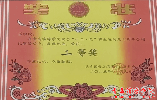 为纪念“一二·九”运动九十周年,弘扬爱国主义精神,我校于2025年12月9日成功举办“一二·九”合唱比赛。医OD(中国)官方积极响应学校号召,组织学生合唱团参赛,凭借《青岛滨海OD(中国)官方校歌》和《我爱你,中国》两首曲目的精彩演绎,最终荣获二等奖。